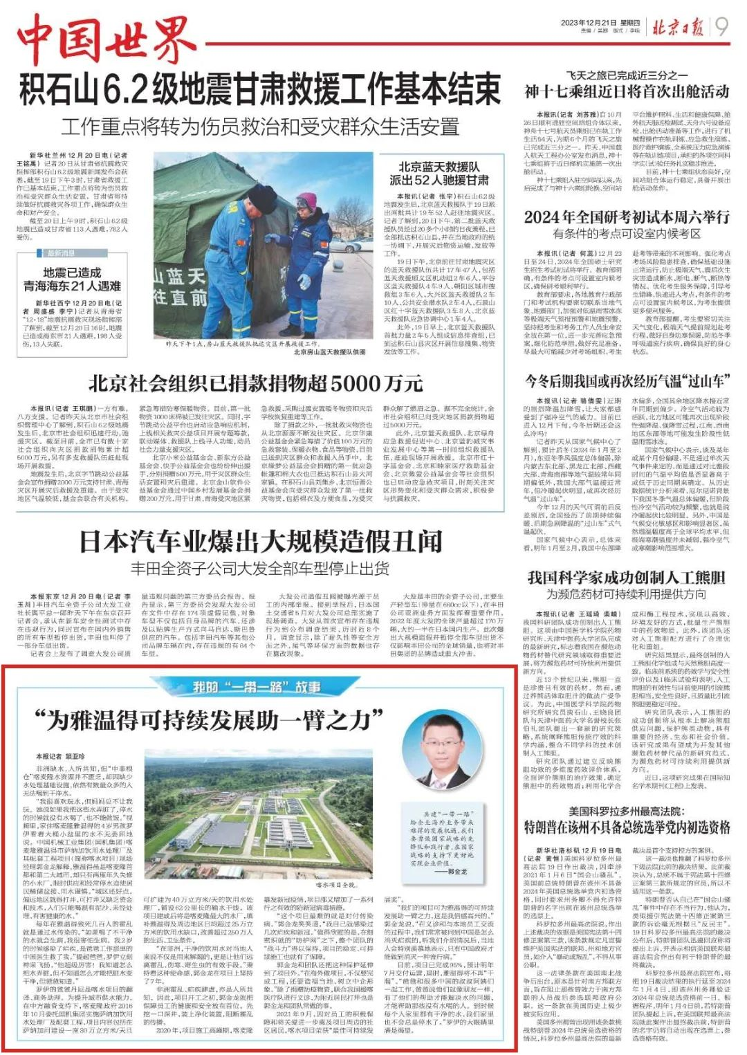 北京日?qǐng)?bào)報(bào)道了國機(jī)工程集團(tuán)海外建設(shè)者,幫助喀麥隆建設(shè)當(dāng)?shù)刈畲蟮乃畯S,填補(bǔ)雅溫得及周邊地區(qū)飲用水缺口,改善超過250萬人的生活、衛(wèi)生條件,獲得當(dāng)?shù)厝嗣竦恼J(rèn)可。